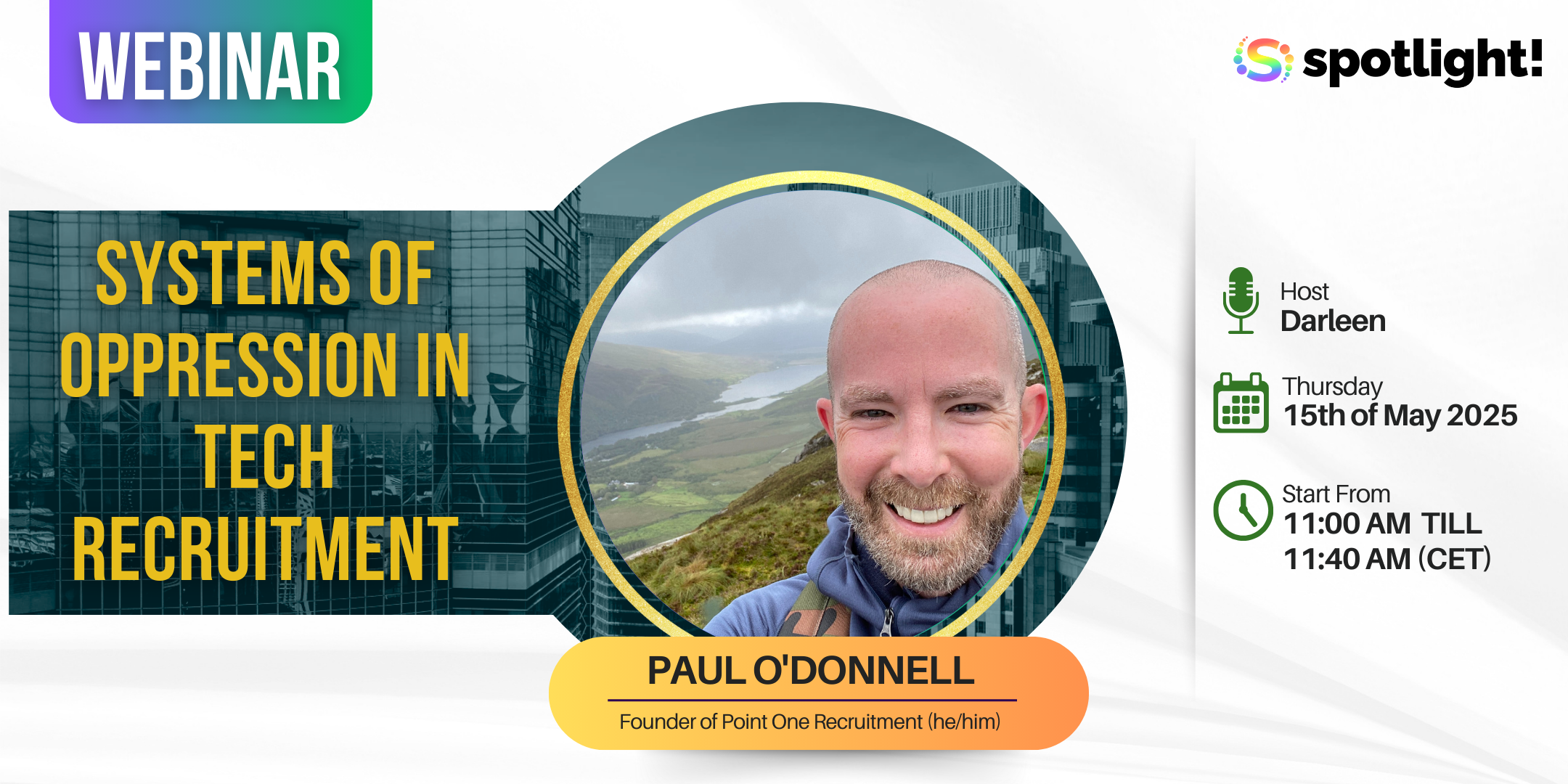 Join us on Thursday, 15th May 2025, from 11:00–11:40 CET for our webinar, Systems of Oppression in Tech Recruitment, with Paul O’Donnell, Founder of Point One Recruitment.